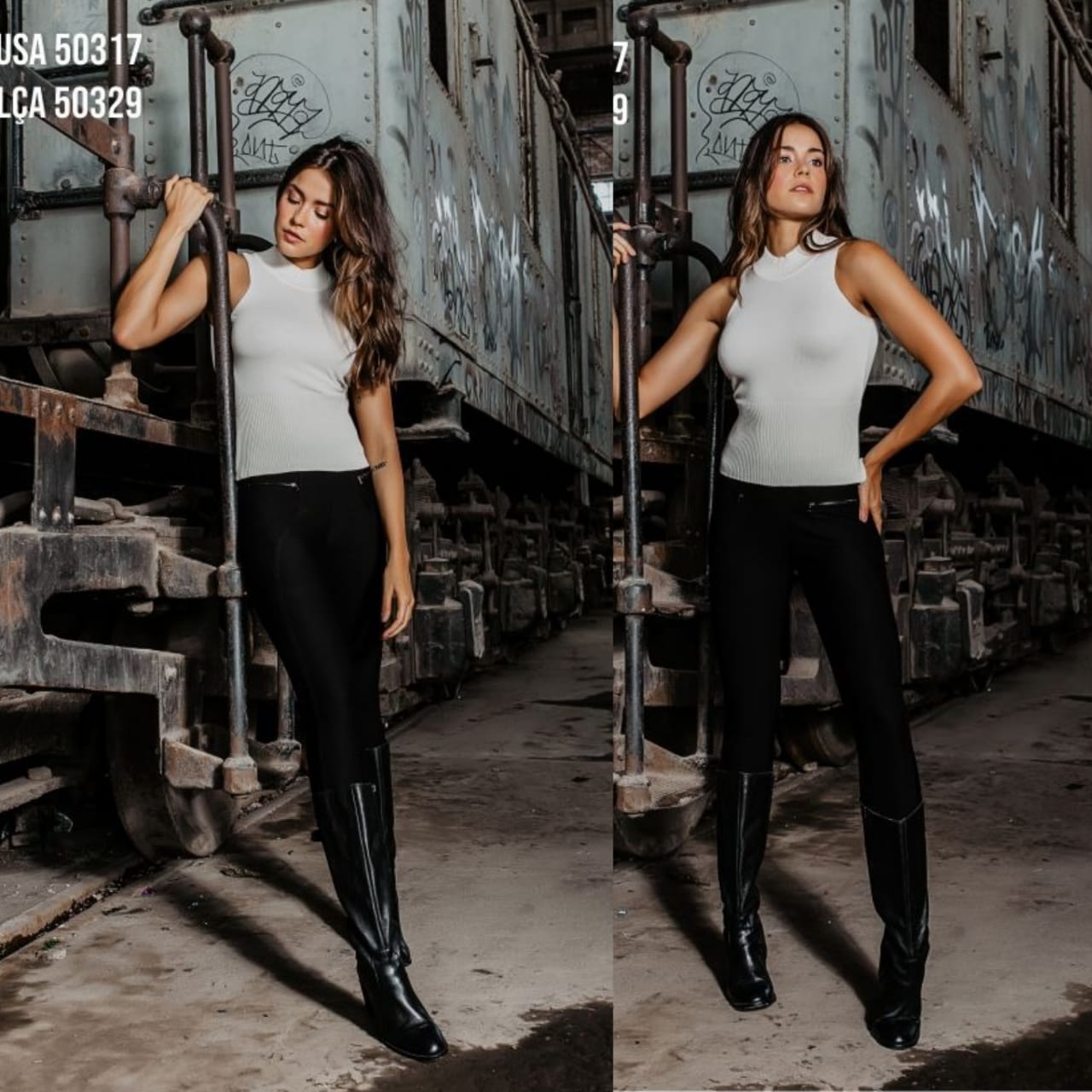 CALÇA MONTARIA C/ TIRAS LATERAL EM COURO