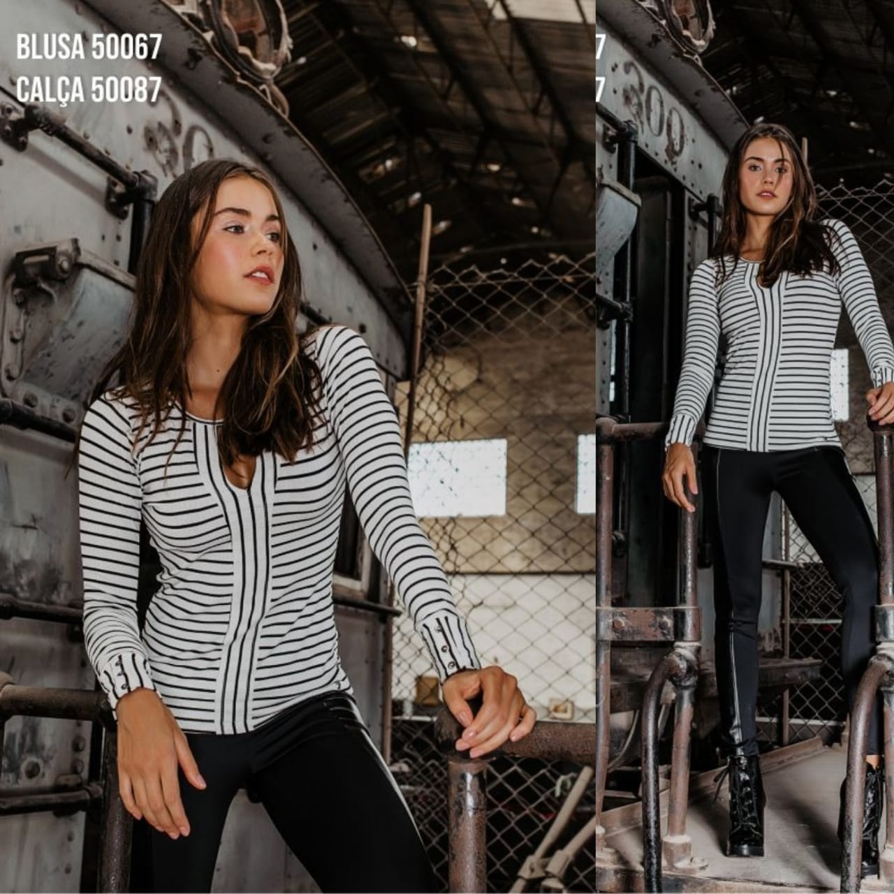BLUSA DE MALHA MANGA LONGA C/ BOTÕES NO PINHO RECORTE GEOMÉTRICO