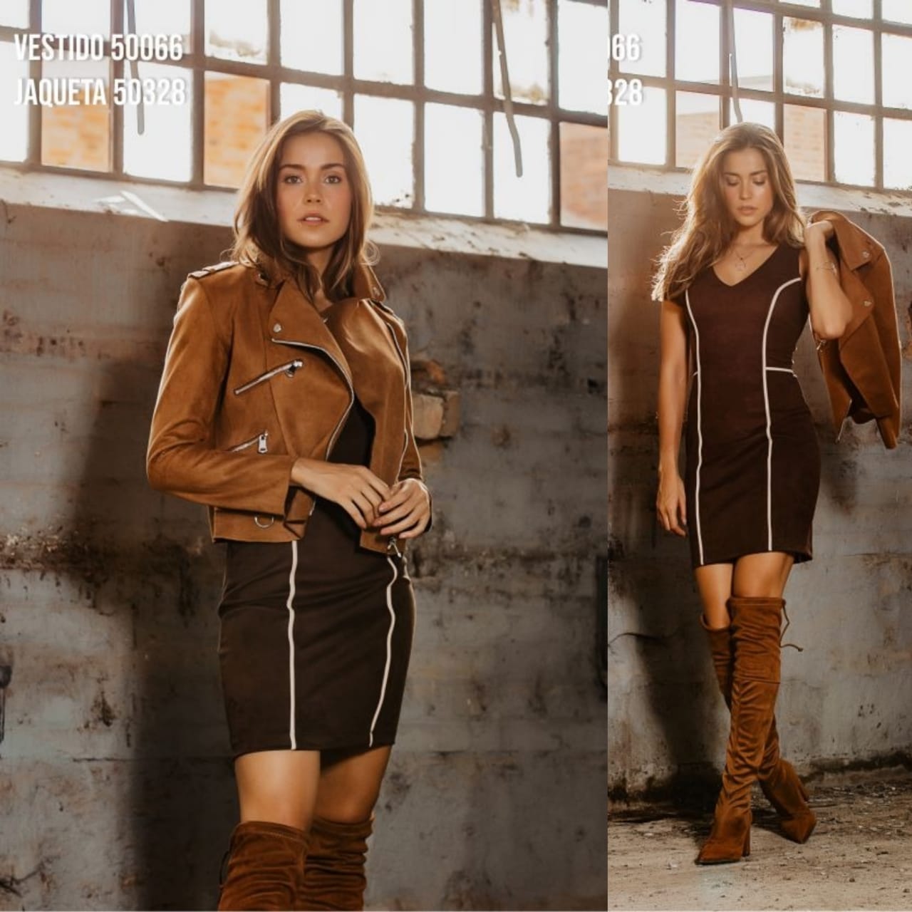 VESTIDO TUBINHO DE SUEDE MANGA ROSA